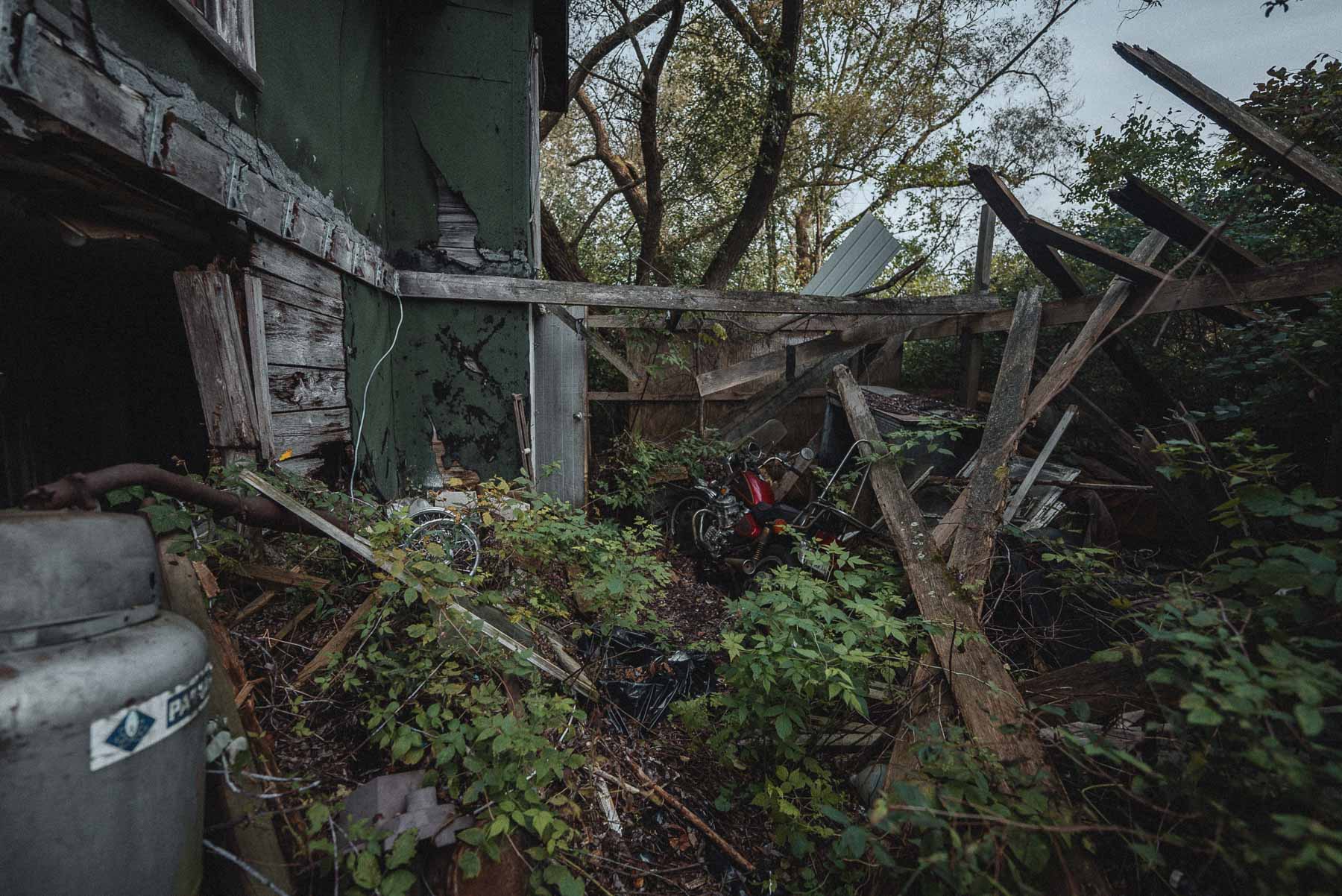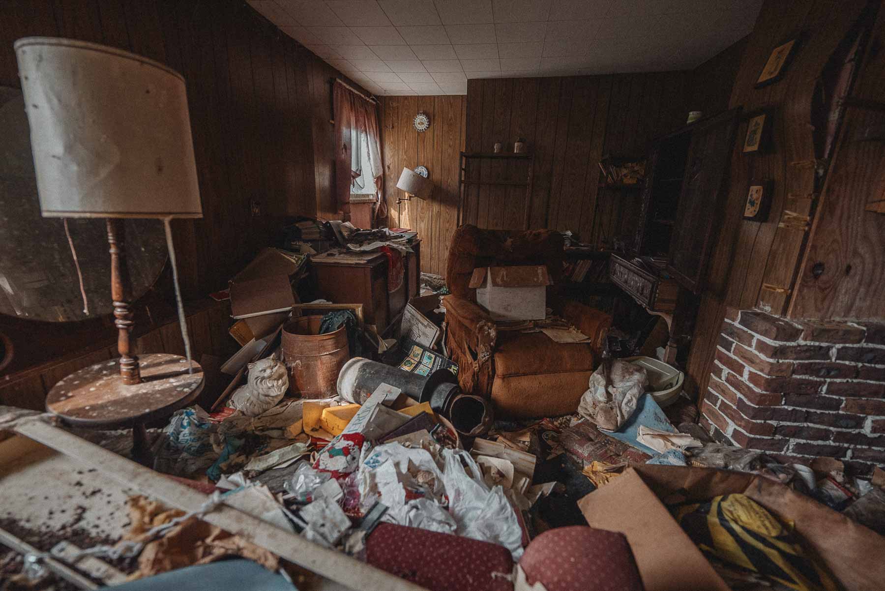 The Dog House is an abandoned residence nestled within a barn near the Pennsylvania border in Tioga County, New York. The property’s history traces back to 1870, with the barn itself constructed in 1948, likely replacing the original structure. The conversion into a makeshift half-residence and half-barn likely occurred in the early 1970s.